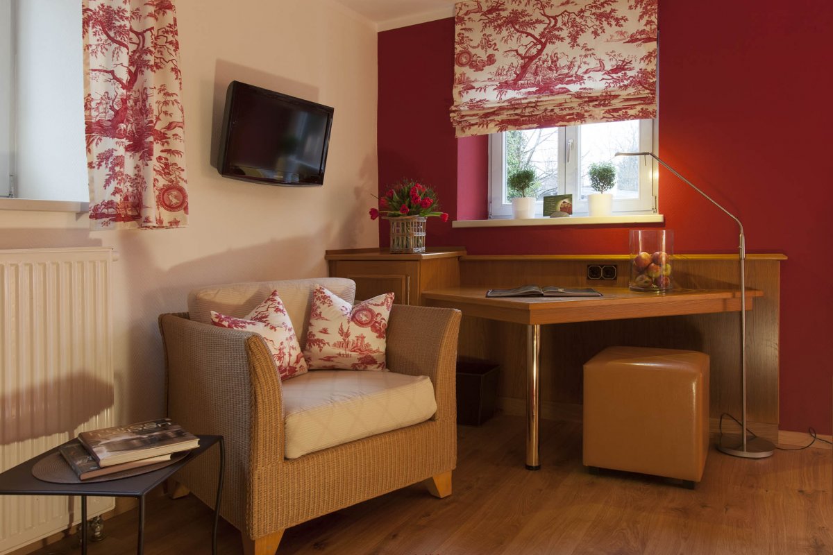 Jedes Zimmer ist individuell in Farbe und Stoff eingerichtet.